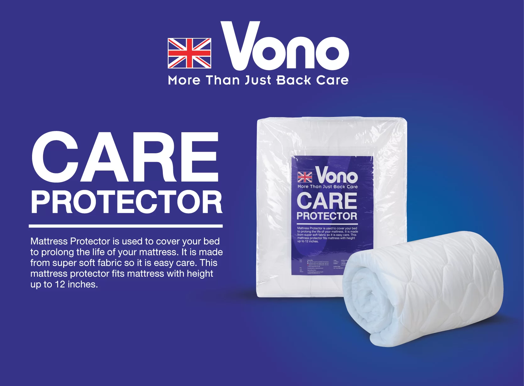 Vono Fitted Care Protector 3.5' 120g. ผ้ารองกันเปื้อนแบบยางยืด ยืดอายุการใช้งานของที่นอน ผ้า Cotton ผสม Polyester ผลิตจากเส้นใยที่ใช้เทคนิคพิเศษ ช่วยป้องกันรอยเปื้อนบนที่นอน เหมาะกับผู้ที่มีผิวแพ้ง่าย เพื่อความสบายสูงสุด